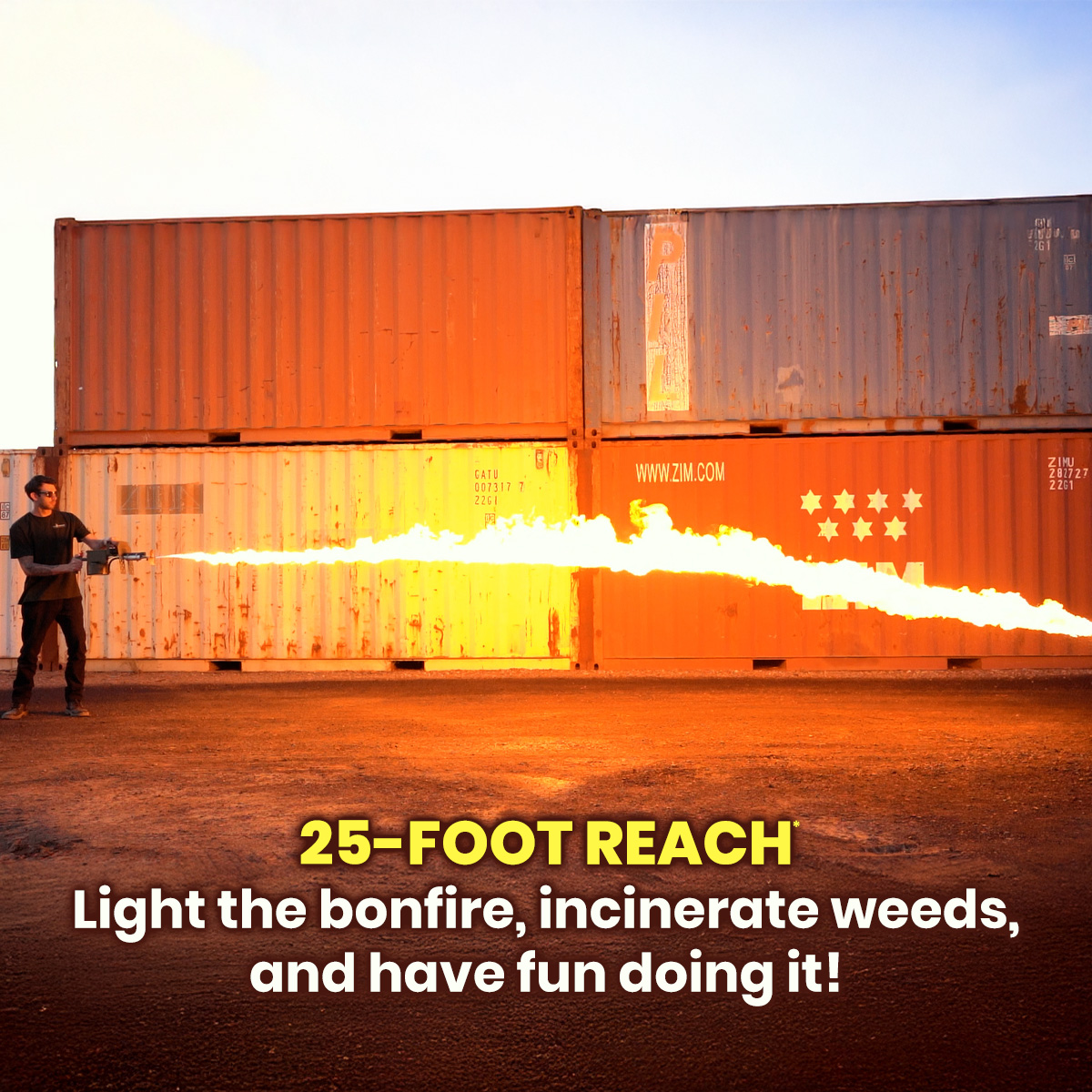 Of course, flame producing equipment is inherently hazardous. Good judgment is key to maintaining personal safety. When the battery is connected, and the power switch is on, pressing the trigger switch will generate fuel and flames up to 30 feet away if there is any fuel in the reservoir. We recommend to always transport the device with the battery disconnected to prevent accidental activation.