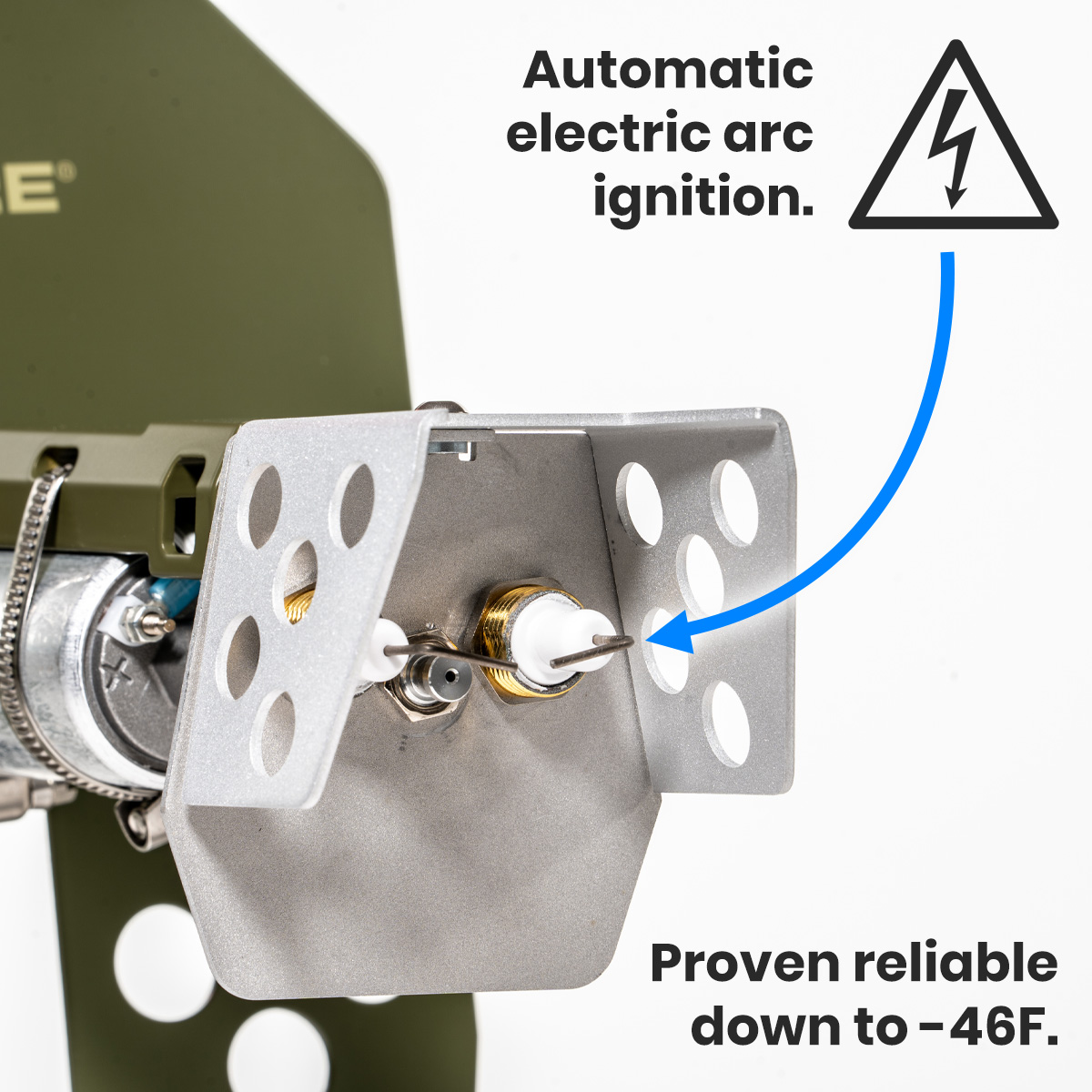 - The ignition system is on-demand; no need for an open flame pilot torch or pressurized butane.